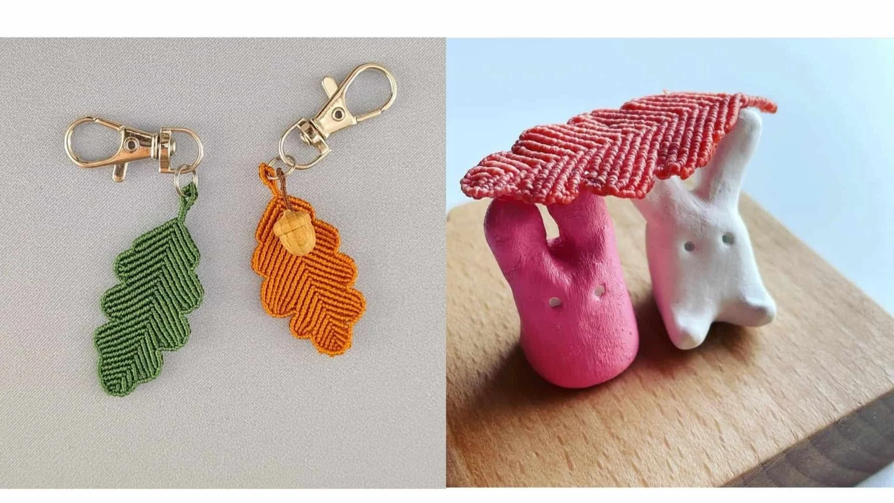 Check out these beautiful oak leaves! You might recall my tutorial on making Micro Macrame oak leaves. In the second photo, you can see a leaf crafted by Lillian, inspired by that very tutorial.